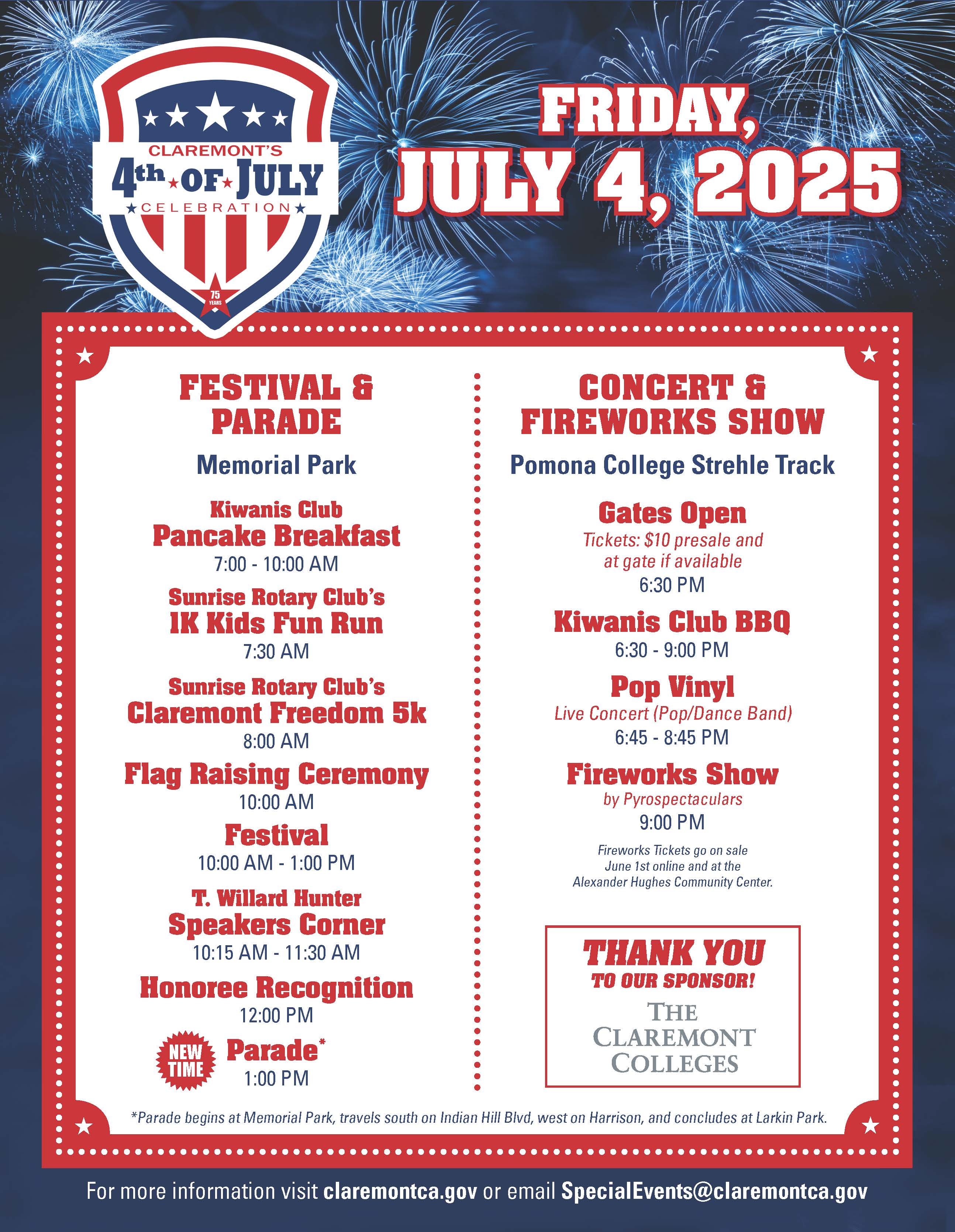 A fun-filled event for the whole family, featuring a 1K Kids Fun Run and 5K Race/Walk, a flag raising ceremony, live entertainment, non-profit booths, food concessions, FREE children's activities, the T. Willard Hunter Speakers Corner, community parade, and a fireworks show and concerts.